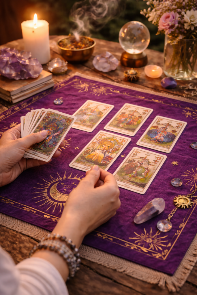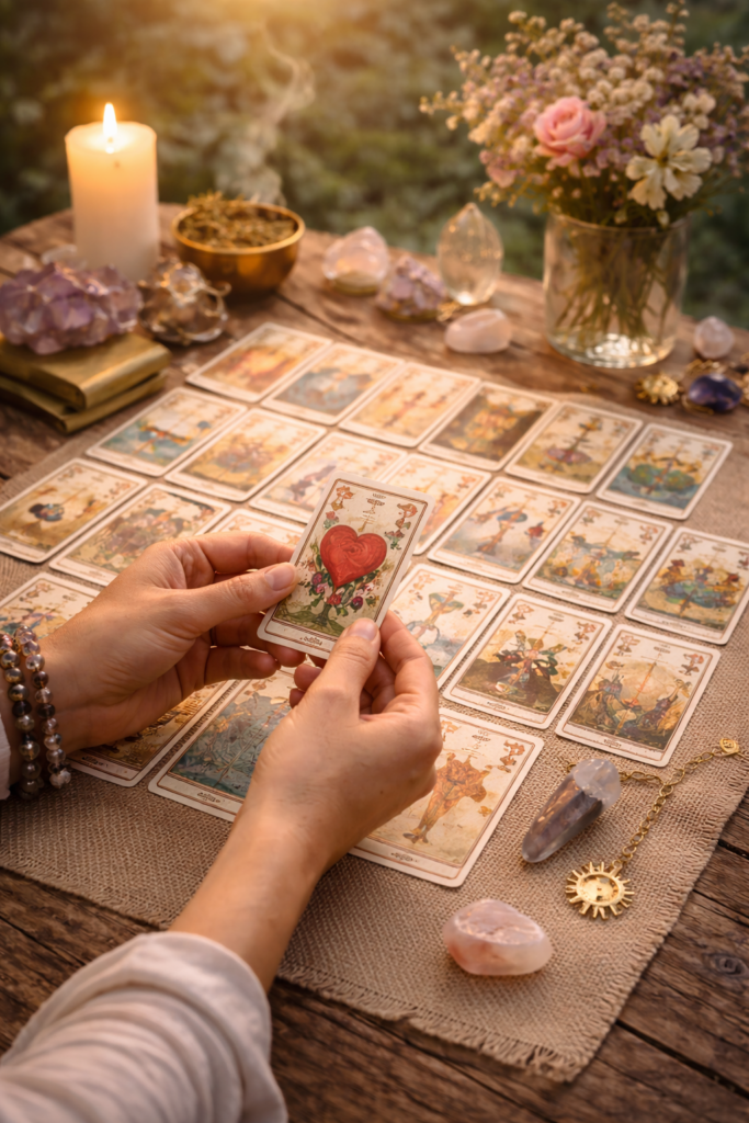 Leitura completa e aprofundada que analisa diferentes áreas da vida como amor, trabalho, família e espiritualidade. A Mesa Real oferece uma visão ampla da situação atual, tendências futuras e direcionamentos claros.